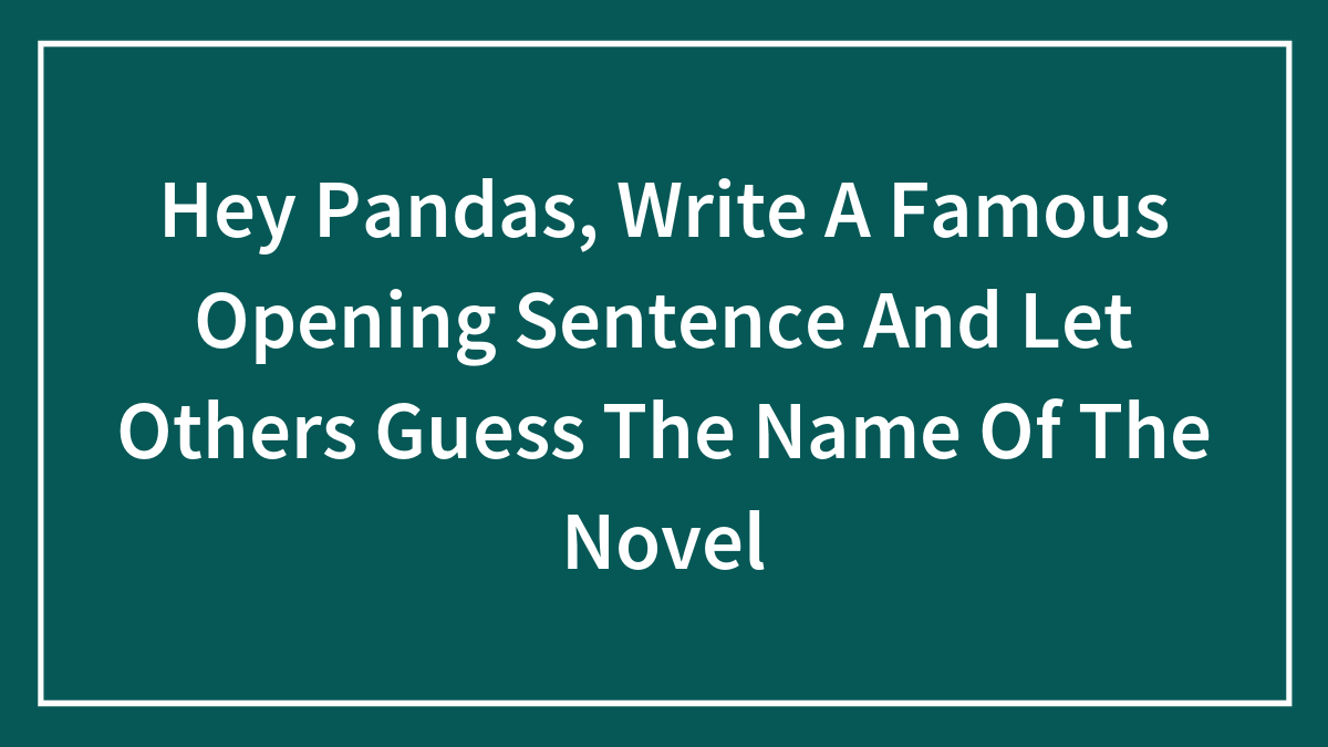 Hey Pandas, Write A Famous Opening Sentence And Let Others Guess The Name Of The Novel (Closed)