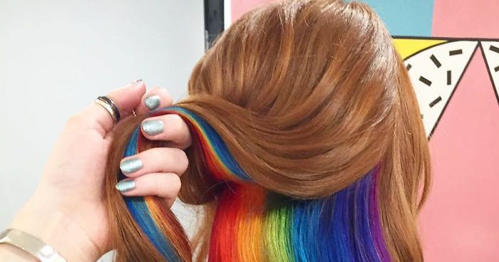 There were lots of hair trends in the past couple of years. From pixelated hair to rainbow pastel hair to galaxy hair, and even ‘merman’ hair – we’ve had it all. They may be cool and all, but some of us are just too shy for these bold hairstyles or simply have a more conservative job… If you’re one of those people, you’ll love this hidden rainbow hair that might become the next big hair trend!