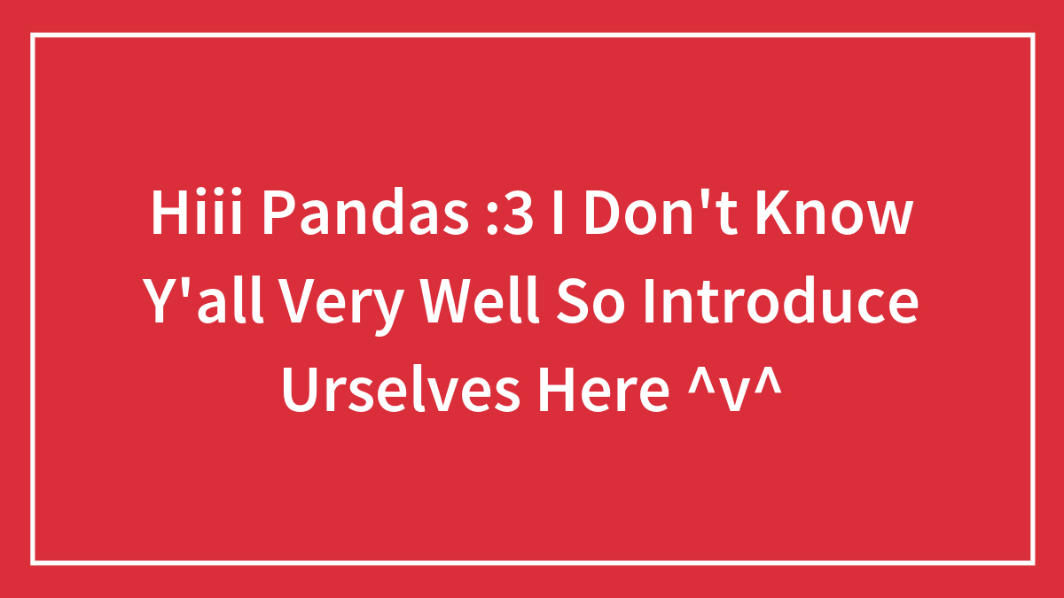 Hiii Pandas :3 I Don’t Know Y’all Very Well So Introduce Urselves Here ^v^