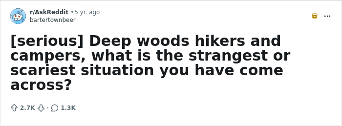 But because hiking and camping are so much fun, it’s easy to forget how dangerous they can be. Safety should always be your utmost priority, otherwise you might not make it out of the woods. Redditors have been recalling the most terrifying experiences they’ve had in the forest, so we’ve gathered some of their tales below. We certainly don’t mean to scare you, pandas, but let these stories be reminders that you should exercise extreme caution while exploring the wilderness.