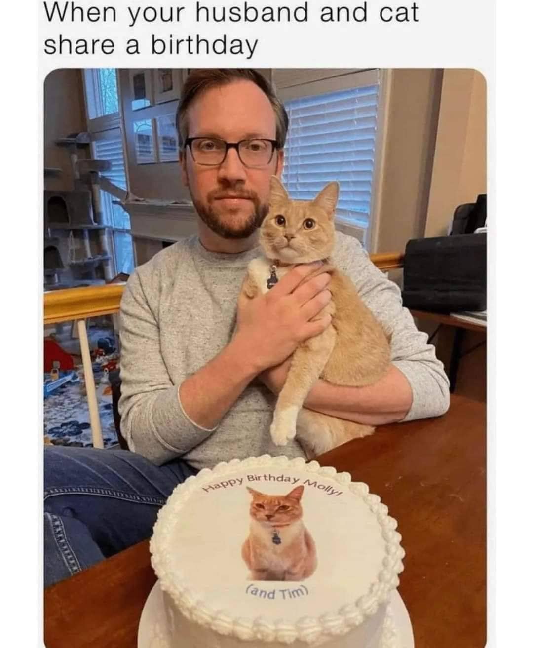 I feel for Tim. I adopted a litter of three kits that my vet backdated to have been born on my birthday. I thought 'how cute! A family birthday!' But... no. That day is now just a 'cat birthday,' and the cats don't like my old joke of asking them every year if they want to trade ages.