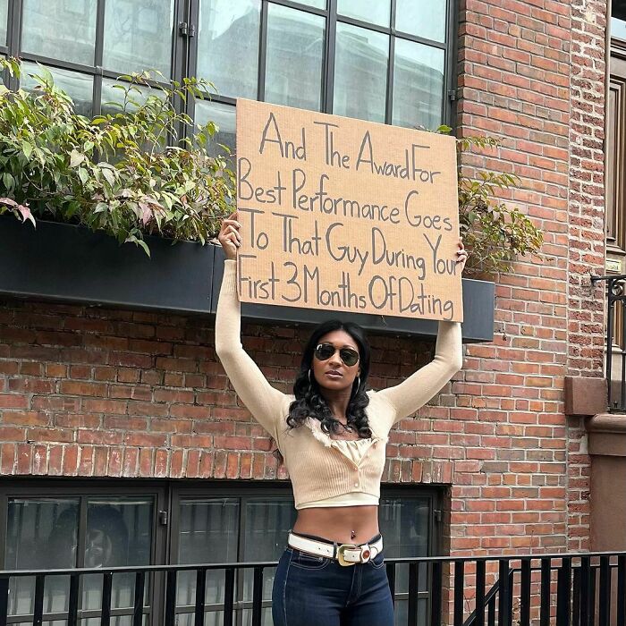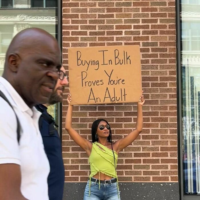 She quickly amassed almost a million followers, as folks across the world resonated with her witty commentary and female perspective on the “person holding a sign in public” type of content. We got in touch with her to learn more. So get comfortable as you scroll through, upvote your favorites and be sure to comment your thoughts below.