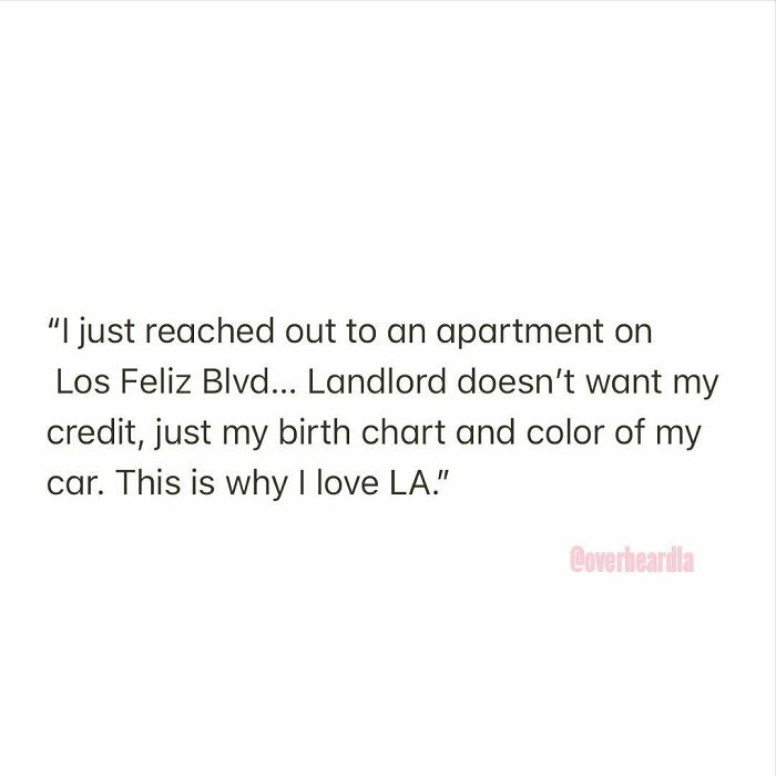When you’re done enjoying this list and upvoting all the giggle-worthy convos, be sure to check out Bored Panda’s earlier articles about ‘Overheard LA’ here: Part 1, Part 2, Part 3, and Part 4. In case you didn’t notice, we’re big fans of the city and all of its nuances.