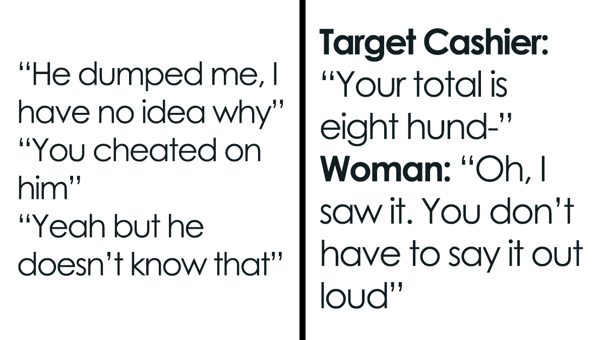 What’s more, verifying that a conversation definitely took place is also next to impossible. So read some of these overheard convos with a grain of salt, though keep in mind that fact is often stranger than fiction.