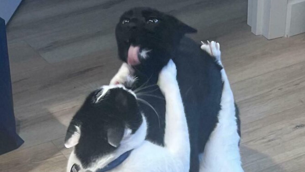 We Recently Adopted A 10 Week Old Kitten, And I Was Worried About How Our Older Cat Would React. Whack-A-Cat Has Become Her New Favorite Game Apparently