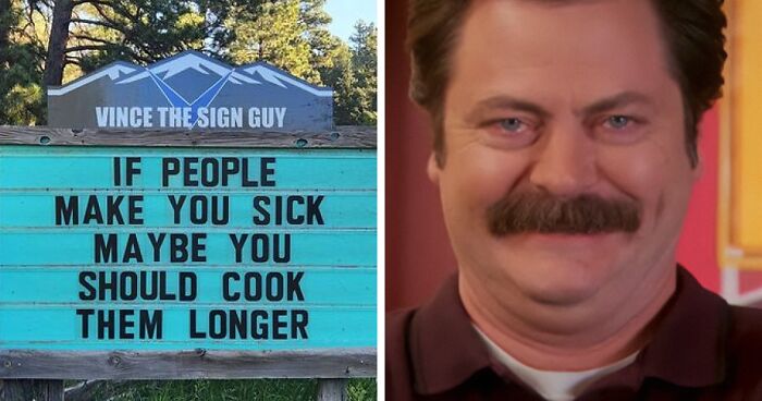 Vince Rozmiarek, aka Vince the Sign Guy, is known for the amusing and pun-tacular roadside messages. We’ve collected some of the freshest and funniest ones to boost your mood and chase away the blues. Check them out below and remember to upvote your faves. And if you’re a fan of Vince’s comedy, be sure to follow his socials.
