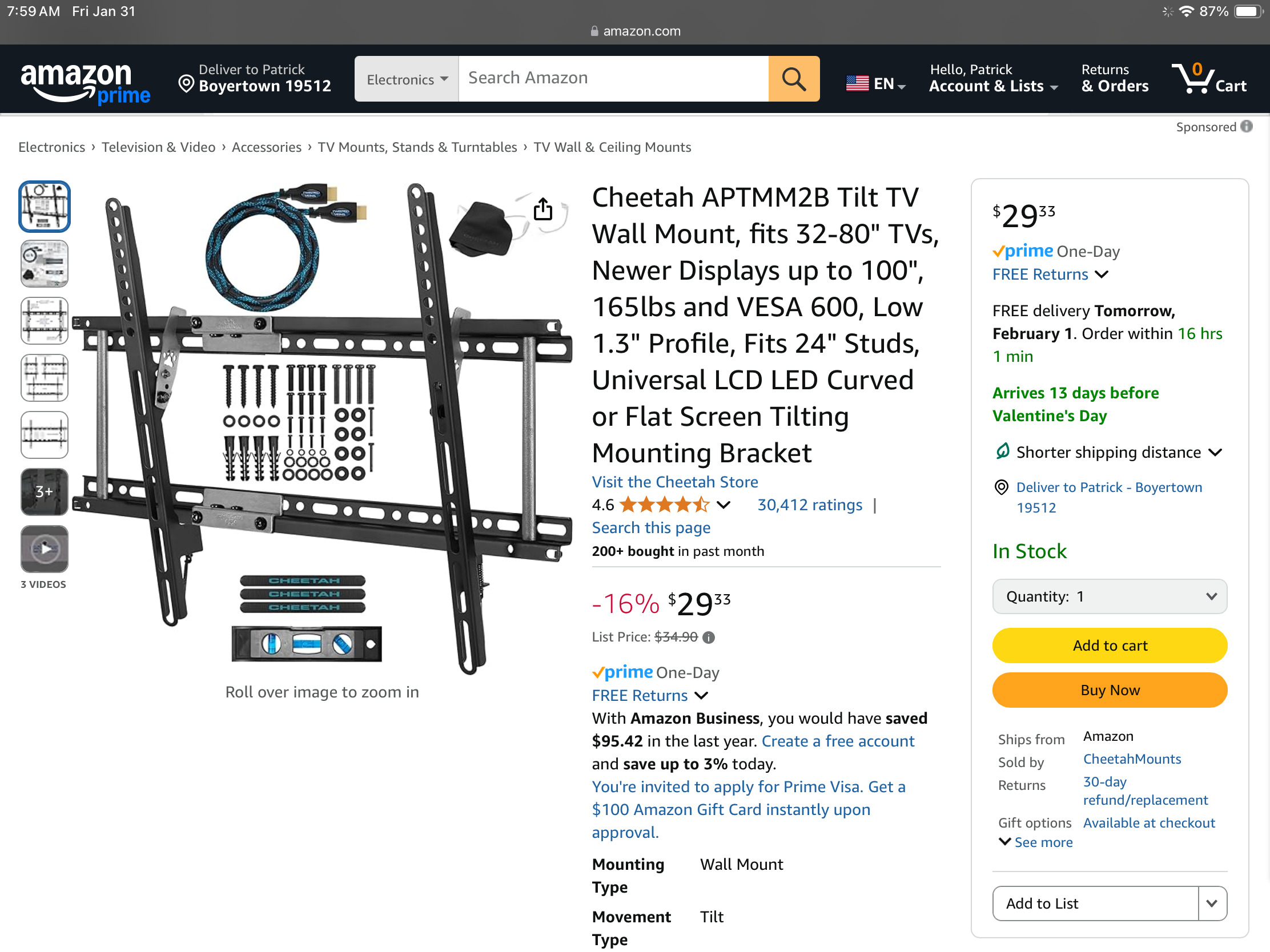 I mounted my mom's TV with an articulated wall mount. She bought a 55" TV and bitched that it would fall. Called in my 14 year old nephew to do 10 pullups on the mount. Then grabbed him by his belt loop to put more pressure on it. He nearly s**t himself trying. Mount stayed up and I gave it 5 stars. I live in Tennessee.