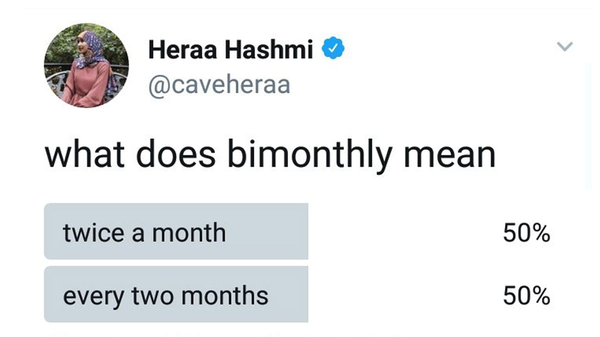 i think twice a month, but apparently the adverb could be both?