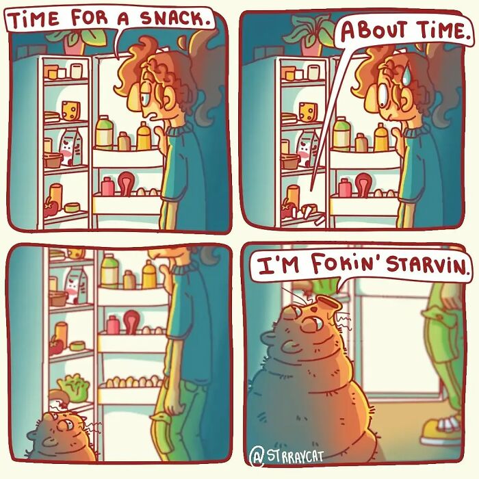 Bored Panda wanted to explore the inspiration behind ‘Strraycat’ and how its creator first got into making comics. Caroline kindly shared her story with us: “Well, I started off always drawing about very serious topics. But then I came to a point in my life where I realised that when people describe me they always mention ‘funny’ or ‘weird.’ And I started noticing that people often laugh hard about my jokes and that they enjoy listening to me when I’m my weird self. So then I started to embrace the comical side of myself who likes to see the fun side of everything, not taking everything so seriously anymore. And short comics were an easy way to share it with people.”