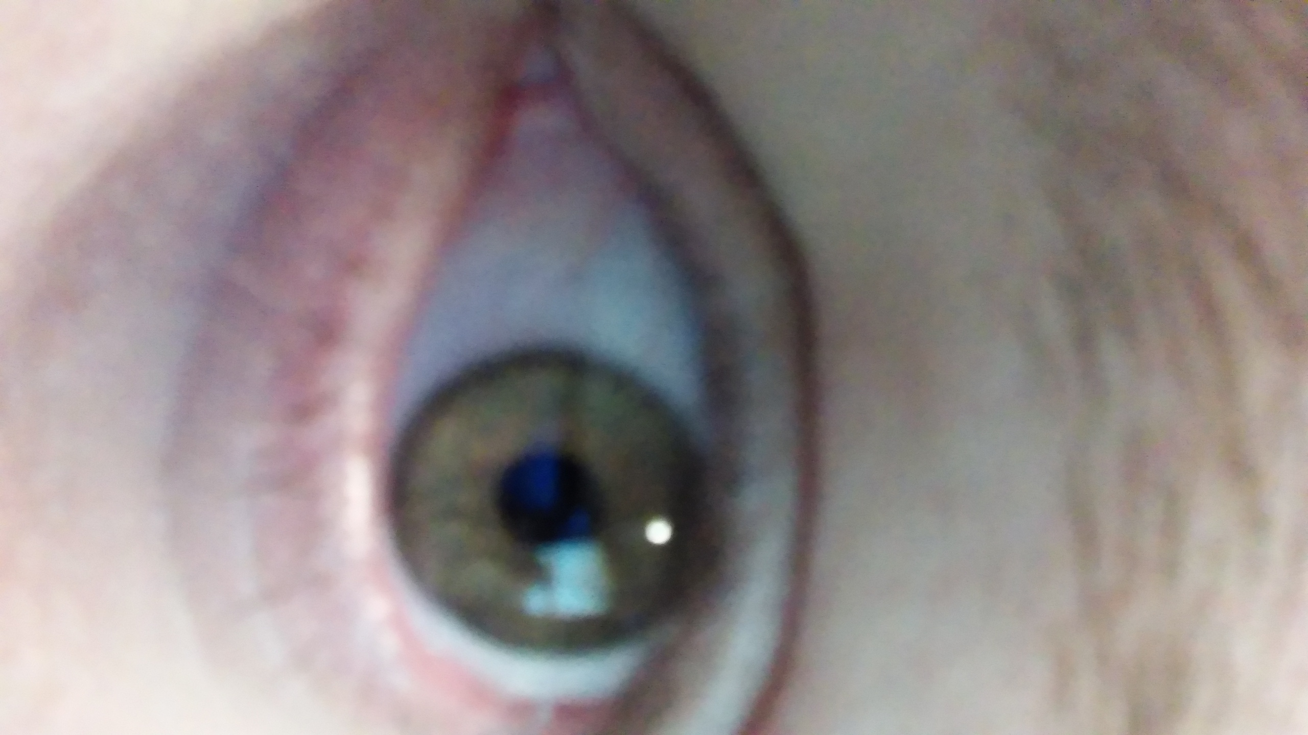 Close-up of two brown eyes with a caption humorously questioning the accuracy of brown eye color on legal documents, shared in hilarious tweets.