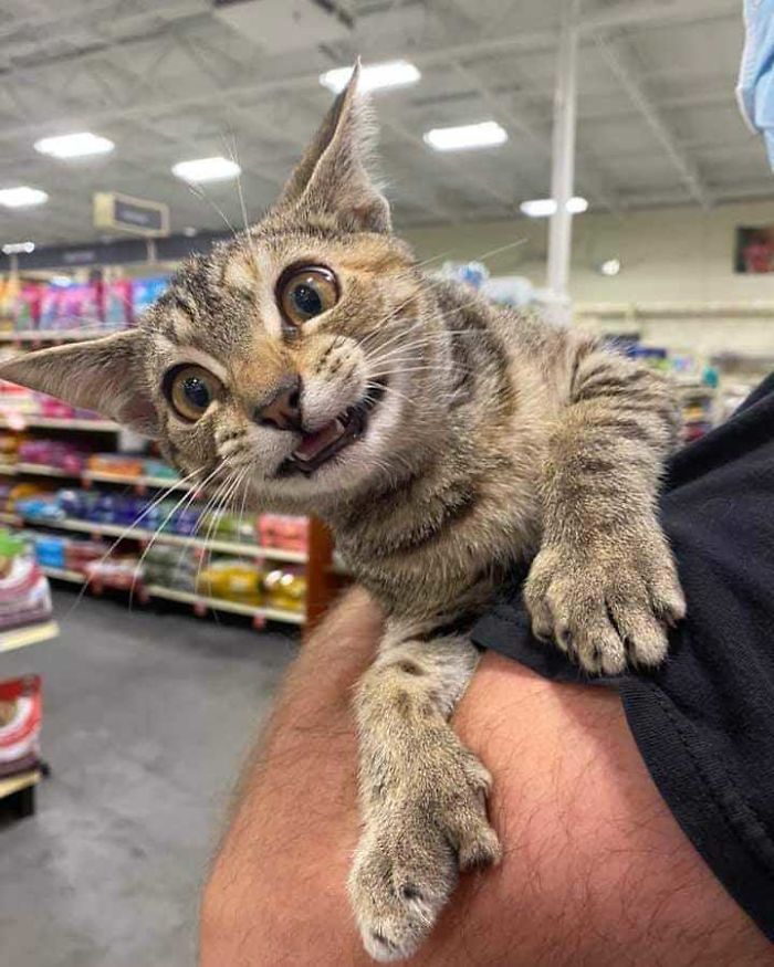 This cat looks very uneasy - did they THROW it to take this picture? Not cool...