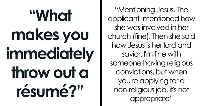 Load More Replies...Way back when people turned in hand written applications, penmanship was a big one for me. If I struggled to make out the words, it went straight in the trash. Slow down and make it legible. Also had someone come in to fill out an app and let their kids run wild in the store while they completely ignored them. Then left without cleaning up any of the mess their demons made. Absolute no.