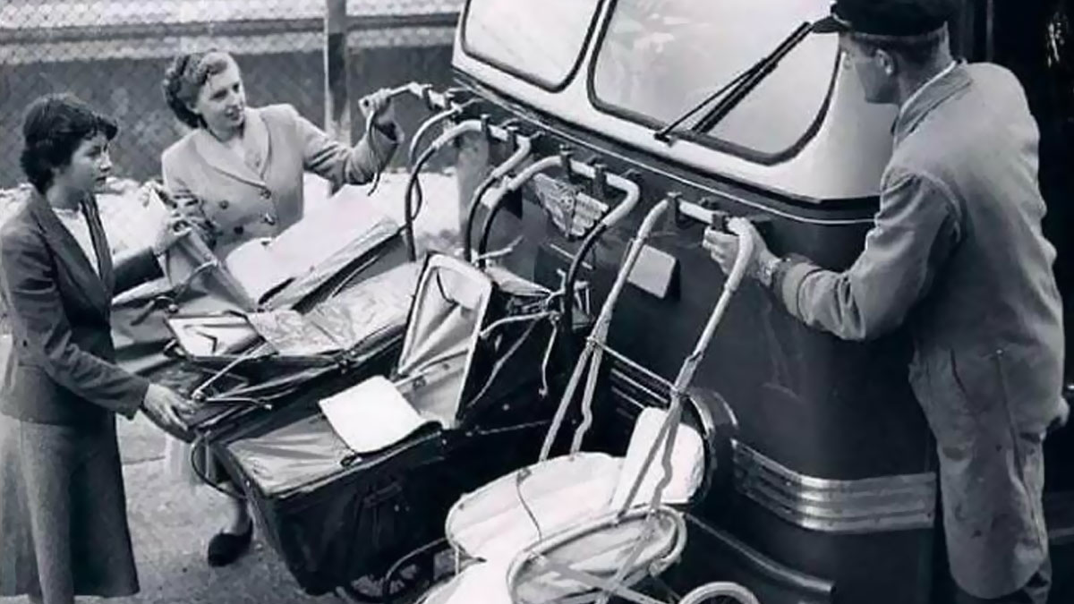 Baby Strollers Strapped To The Front Of The Bus In Opawa, New Zealand (1950s)