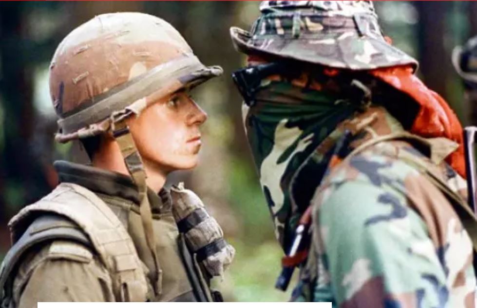 A Mohawk Warrior Attacks A Canadian Soldier While Defending His Territory During The Oka Crisis, 1990