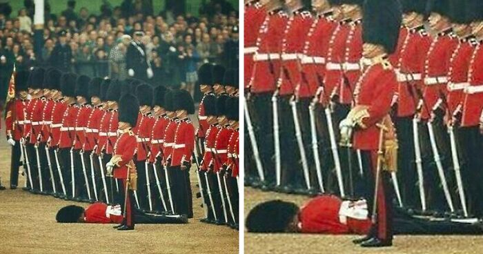 Guardsman Fainted During A Ceremony, But Other Guards Kept Their Attention. London, 1966
