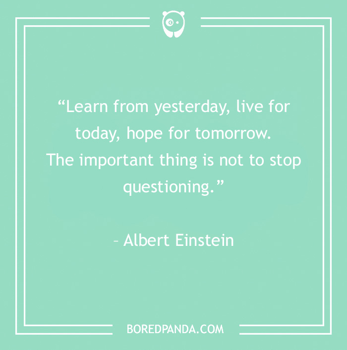 “Learn from yesterday, live for today, hope for tomorrow. The important thing is not to stop questioning.” – Albert Einstein