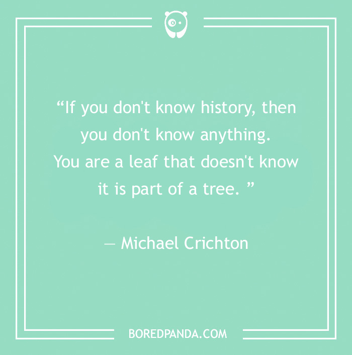 “If you don't know history, then you don't know anything. You are a leaf that doesn't know it is part of a tree. ” ― Michael Crichton