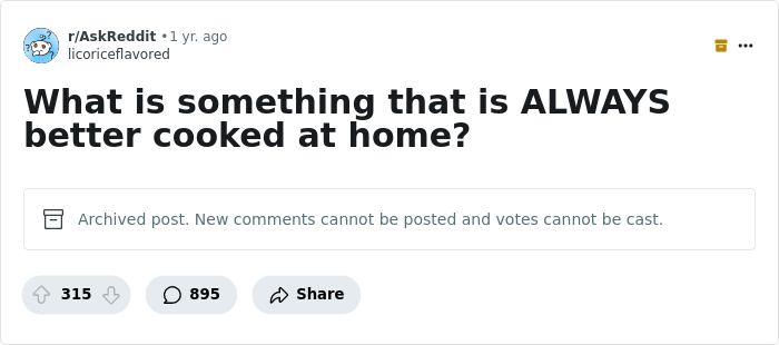 Though, to be fair, the food you order can, quite often, miss the mark, and you feel like you could do much better yourself. It’s not just a feeling—it’s a fact. Today, we’re looking at a popular Reddit thread where various internet chefs shared the dishes that they believe taste far better cooked at home than dining out or ordering in. Scroll down to read what they had to say about the topic.
