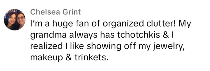 I love intentional or organized clutter. Some people like their house to look like a showroom or a museum where there's, like, almost no signs of life. But I am someone who takes so much pride in the things that I use, like my perfumes, the books that I read, coffee cups, jewelry. I like to kind of scatter these things. Not literally just throw them around my apartment.