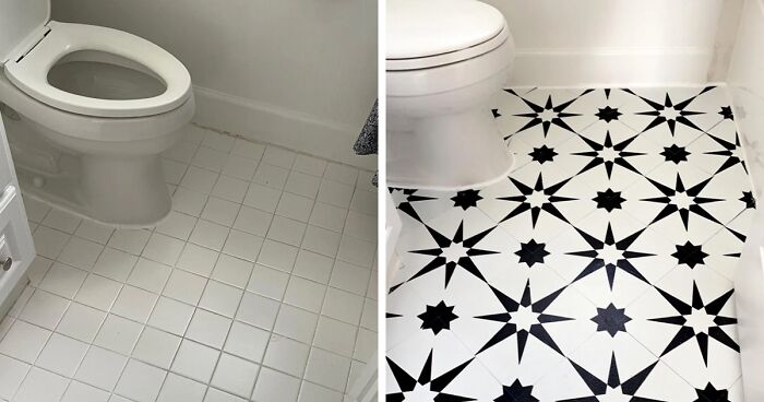 Moved Into A New Rental And Hated The Bathroom. Decided To Try Adhesive Tile- I Love It!