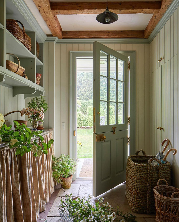 For homes with mudrooms, an exterior Dutch door can be a godsend. Keep the bottom half closed to contain muddy boots or wet umbrellas, while the top half remains open for light and ventilation.