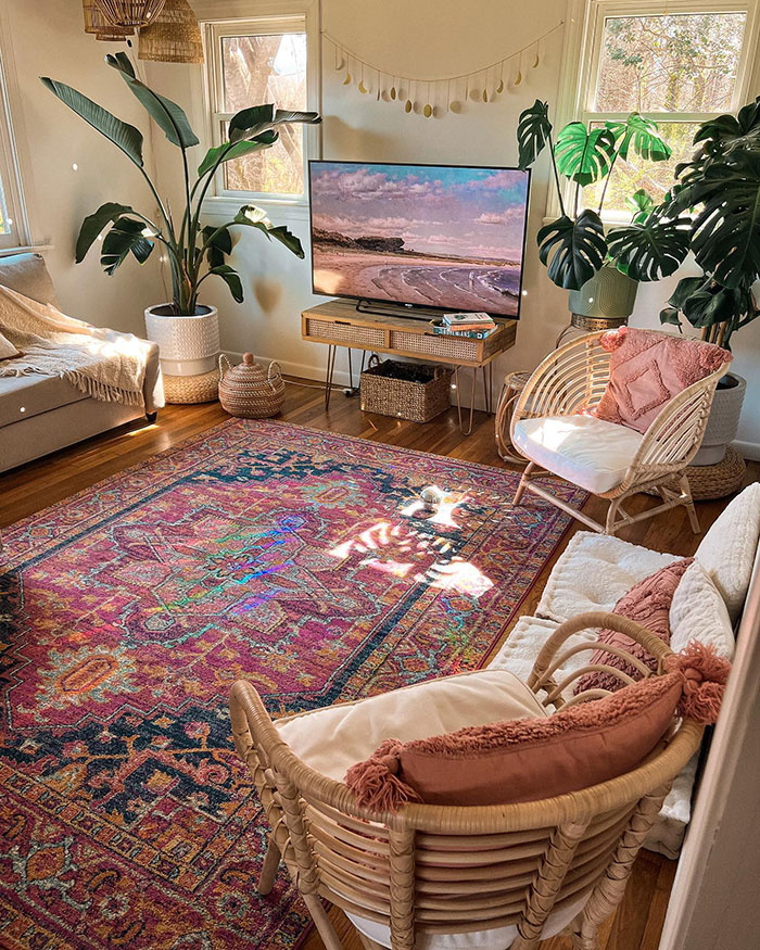 The hippie culture of the ’60s and ’70s influenced the bohemian style. Unconventional, artistic lifestyles inspire bohemian interior design, celebrating individuality, creativity, and diversity. These ideas are expressed through rich, vibrant hues and a mix of patterned decorations. Bohemian living areas are usually decorated with plants, art pieces, and a wall of bookshelves.