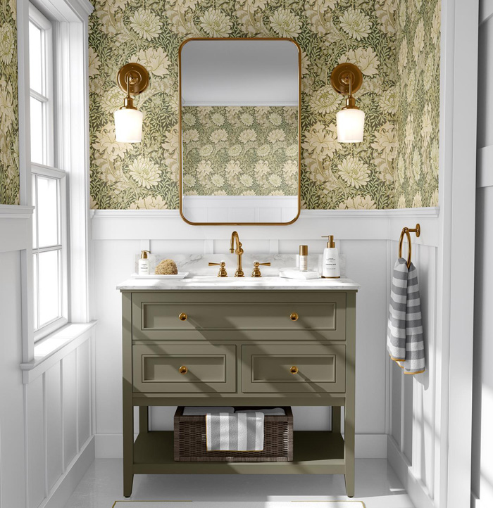 Choose a smooth paper for your wallcoverings or a nice pattern look that complements your decor. But most importantly, select a design that speaks to you. It can be a bold print with dark florals or a subtle texture with neutral colors. Whatever floats your boat!