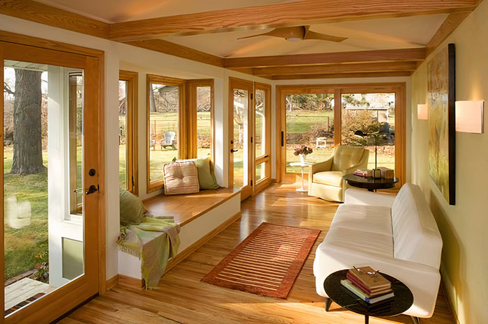 Choose durable and comfortable furniture and other interior details that can withstand sun exposure and temperature changes in the sunroom.