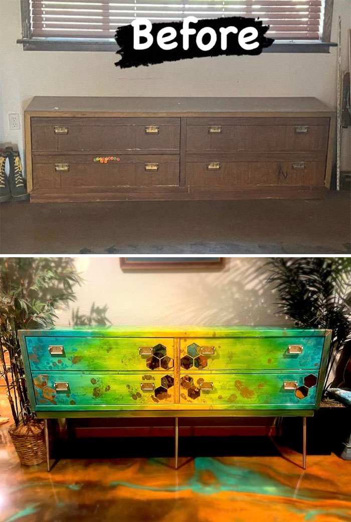Medium: Chalk Synthesis Paint, Metallic Guilding Paint, Polyurethane, on Old Wood Furniture