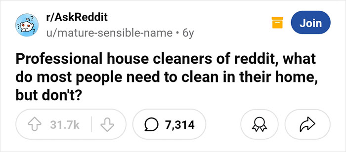Load More Replies...This is probably an unpopular opinion but who has time and energy to do all this cleaning? If you're working 40,50,60+ hours a week when I get home I don't want to spend all my time cleaning. Where's the quality of life in that? Pretty said if your life is just working and housework. Personally I'd rather live in bit of a pigsty and actually enjoy life. Otherwise what's the point? Come at me!