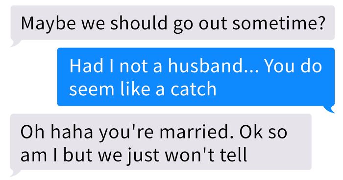 Bad enough to keep pushing a married person to cheat, but to admit so happily that you're married too and don't care is so incredibly shameless. The whole ordeal makes me sick. All in all, she let him down in such a nice and honest way. It is sad that some people don't have the same idea of marriage as her...