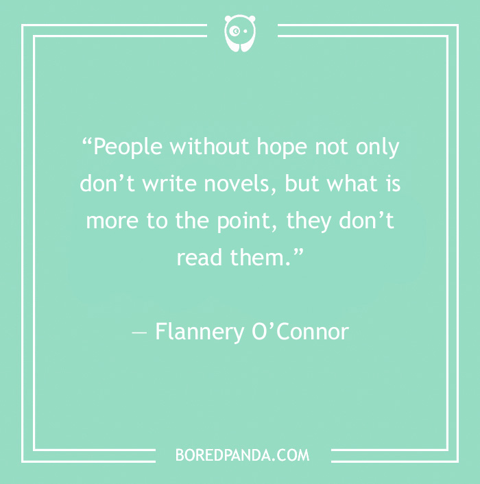 “People without hope not only don’t write novels, but what is more to the point, they don’t read them.” — Flannery O’Connor