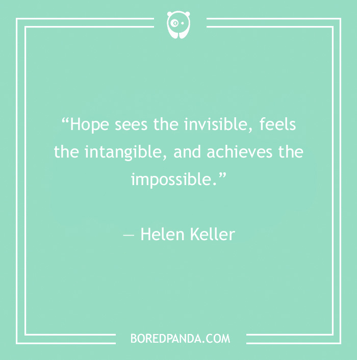 “Hope sees the invisible, feels the intangible, and achieves the impossible.” — Helen Keller