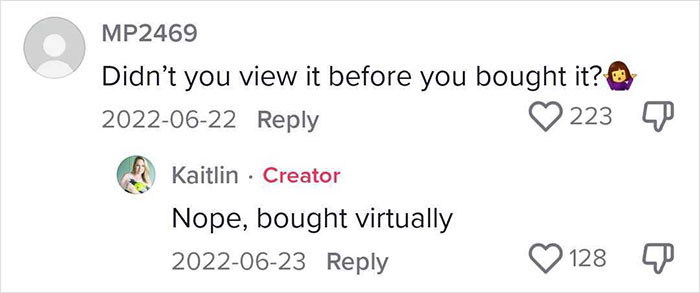Load More Replies...Almost everything she complained about would have been quite obvious in a basic pre-sales walkthrough, the rest would have been found by a competent home inspector.