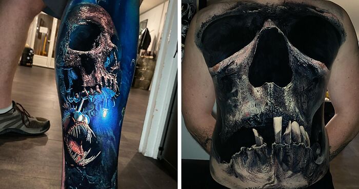 Meet Sandry Riffard, a talented artist from France who stands out with his hyperrealistic macabre tattoos. Dominated by skulls, zombies, demons, and more, his designs might give you the chills, yet we cannot stop looking at them!