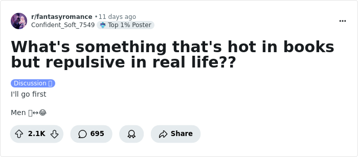 “What’s Something That’s Hot In Books But Repulsive In Real Life?” (40 Answers)