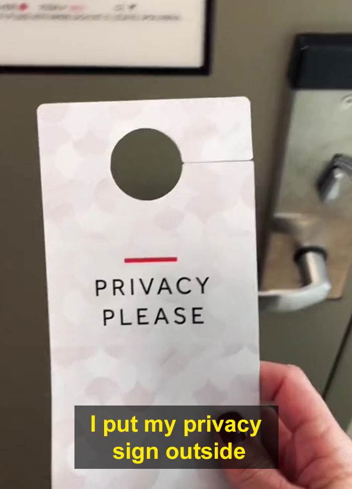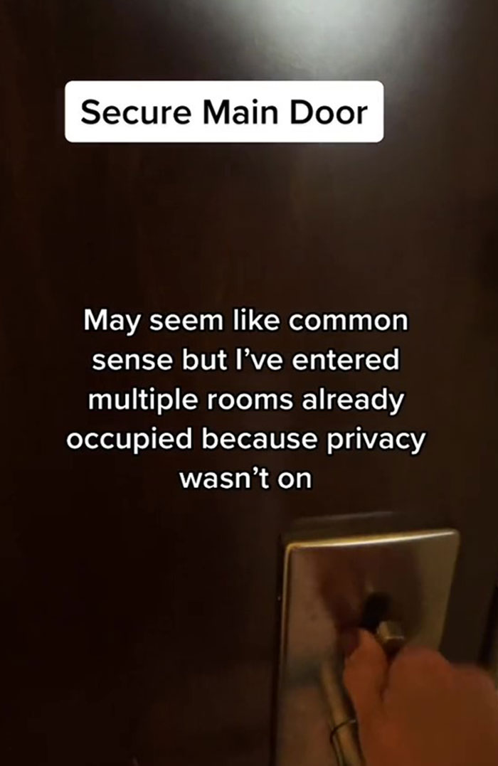 Another tip is to secure your main door. The woman says that though it might seem like common knowledge, she entered a bunch of rooms that were already occupied because the privacy wasn’t on.