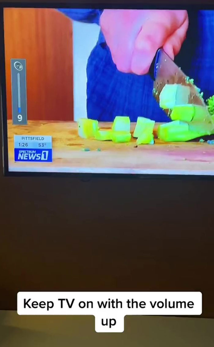 Keep the TV on with the volume up to let the people know that there’s someone in the room
