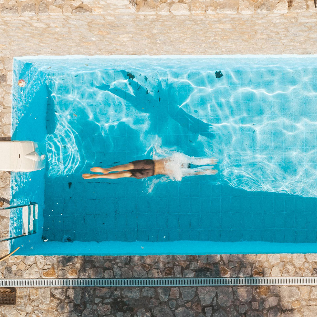 the hotel guest was jumping from their fifth-floor balcony into the pool. He had to be perfect to get the proper distance to clear the pool deck with chairs, but not too much as to overcompensate and land on the opposite side. He was immediately told to check out or the police would be called