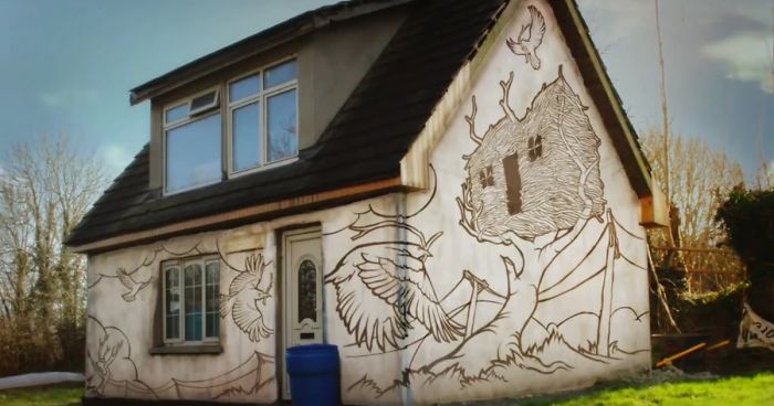Artist Ciaran ‘Yohan’ Brennan has transformed his dull grey house into a playful and colorful “painting”. Not only that, he made an entertaining stop motion video capturing the whole process! Brennan’s Spiderman-like skills should help him clean those windows as well.