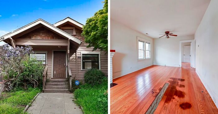 Taking to the Zillow Gone Wild Reddit community earlier this month, a Redditor posted pictures of a house with wood flooring partially covered in maroon stains reminiscent of dried blood.