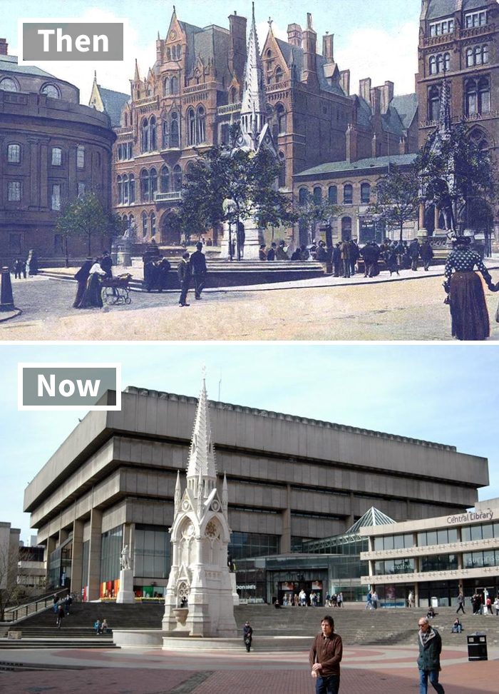 Photos a century old don't show what state the property was in when it was renovated or replaced. The Regency-era (early 1800s) buildings where the Birmingham City Library (built in the 1950s) had been bombed.