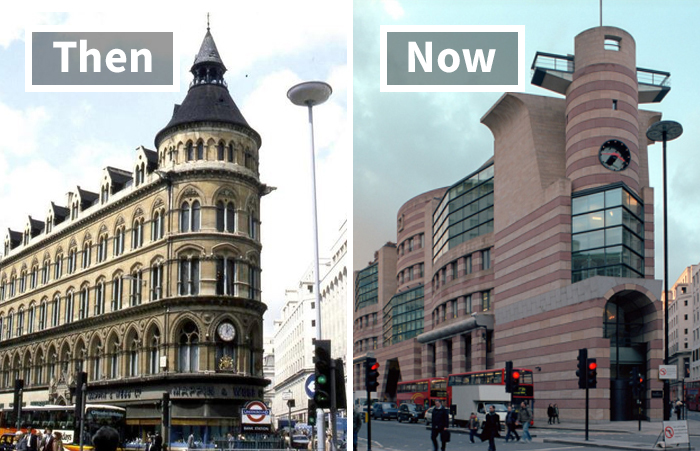 Therefore, some people that are more leaning towards traditional architecture are worried that the notion of beauty in buildings is fading away. As cities all over the world are experiencing globalization, the newly designed buildings can sometimes look awfully alike, even if they were built thousands of miles apart. We're all familiar with the glass boxes in the prestigious areas of cities, that, according to some, are lacking that certain kind of charm, or je ne sais quoi, that makes them unique in their own way. But before we get all judgy, we want to let you decide what you think of these building renovations. Bored Panda has made you a list of before and after pictures of some buildings around the world that were renovated in a way that didn't sit right with some people. Do they look good to you? Scroll down below to see them all and tell us your opinion!