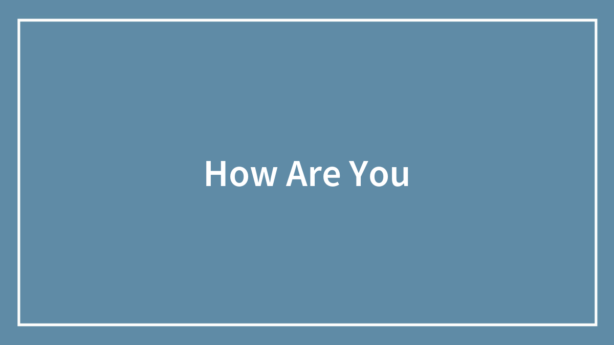 How Are You
