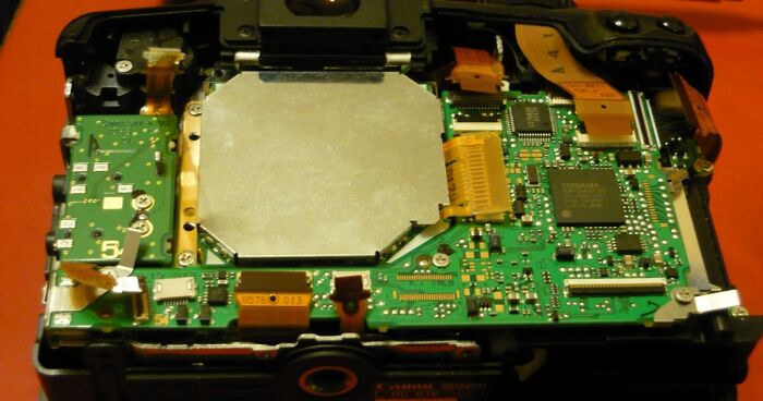 The backside is easy to take off; take off every screws, and peel out the back side. Be careful, as there is a flex cable for the LCD. Pull off the front cover also. Be careful to not touch the flash condenser cables on the front panel : cover it with insulating tape!