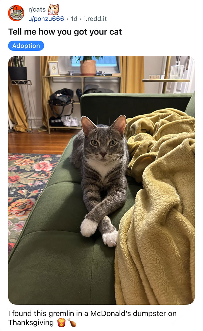 While these are the most common ways people acquire a pet, it doesn’t mean they’re the only ones. Just take a look at today’s list, where people shared how they got their cats.