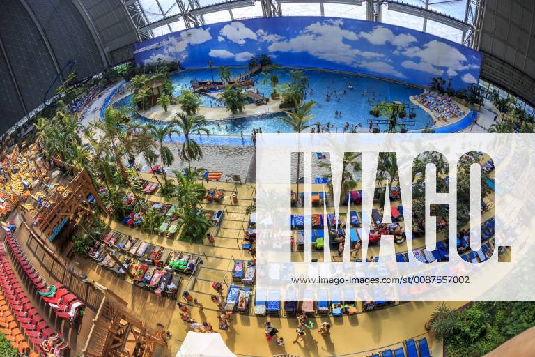 I guess this is the former blimp-factory turned to a giant inside water park. It's near Berlin, Germany and they not only have this beach-section with windows. There are holiday homes inside and an entire landscape