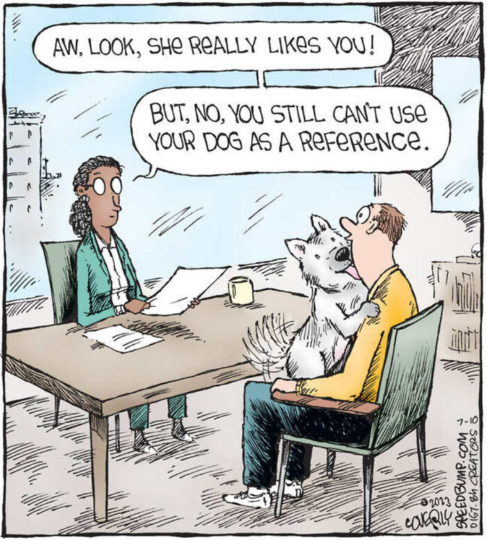 The errors eventually piled up into a style, haha. From a writing standpoint, I did jokes that were far more about wordplay in the beginning, but it slowly dawned on me that the cartoons I'd done that I liked best were *about* something. They got at something relatable, something human, and something shared. So my writing evolved to meet that higher standard. Of course, I don't always reach that standard, and will regularly settle for a dog sniffing a butt joke, but hey, you gotta have goals…”