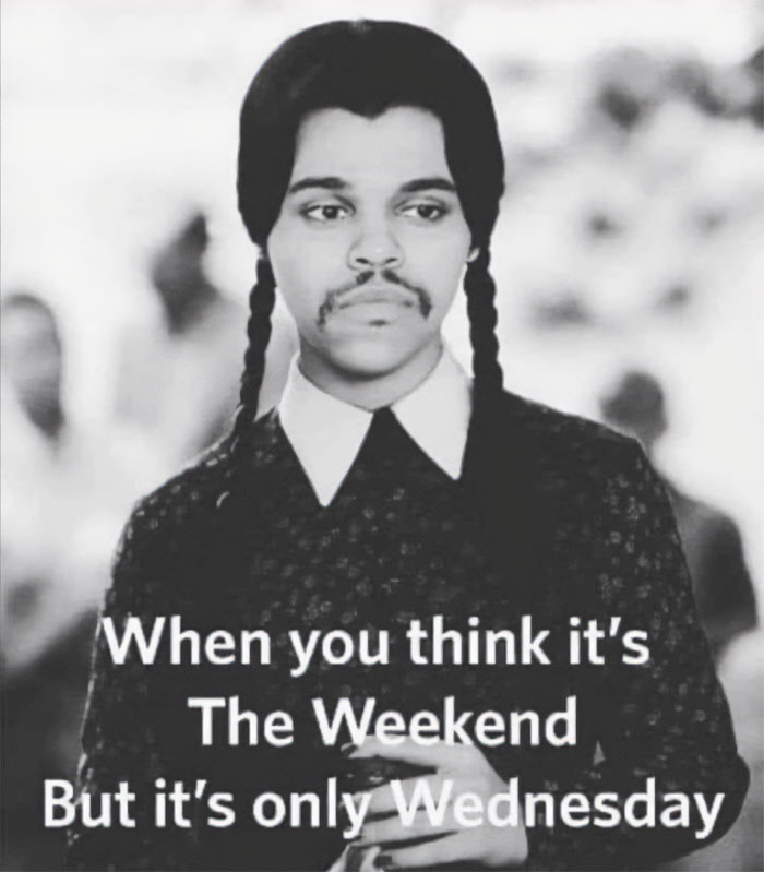 As someone on permanent disability, Wednesday is just another day. I miss the anticipation of waiting for the weekend.