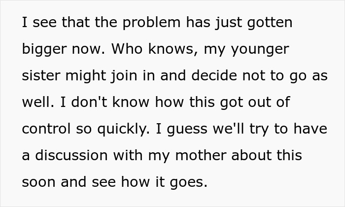 Situations like this aren’t benefiting anyone. The incident sparked tension between the family members, made the woman feel unwelcome in her close social circle, and put an enormous strain on the marriage as the husband apparently chose his mother over his spouse.